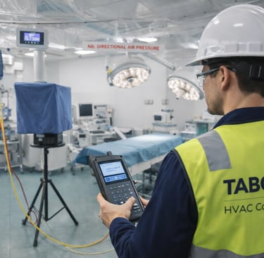 Precision airflow testing and balancing to verify system performance, pressure relationships, and compliance